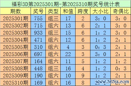 上期转头:福利彩票3D第2025310期开出奖号169。奖号类型:组六,大小方式:小大大,奇偶方式:奇偶奇。