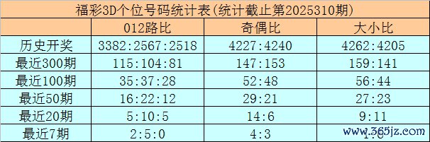 最近7期012路比开出4:3:0,2路号码轮空,现时012路号码划分遗漏:0期、2期和9期,本期十位看好1路号码出现。